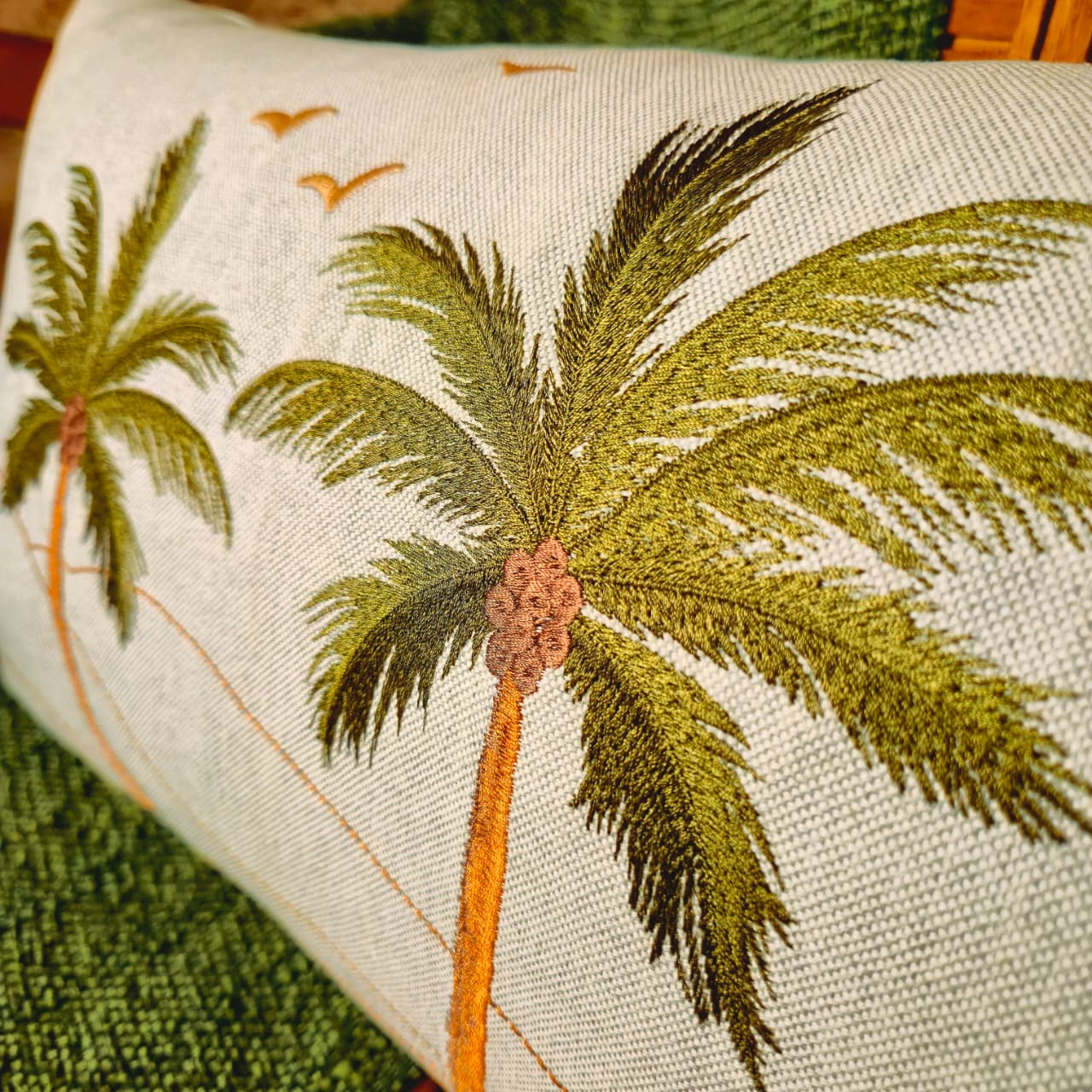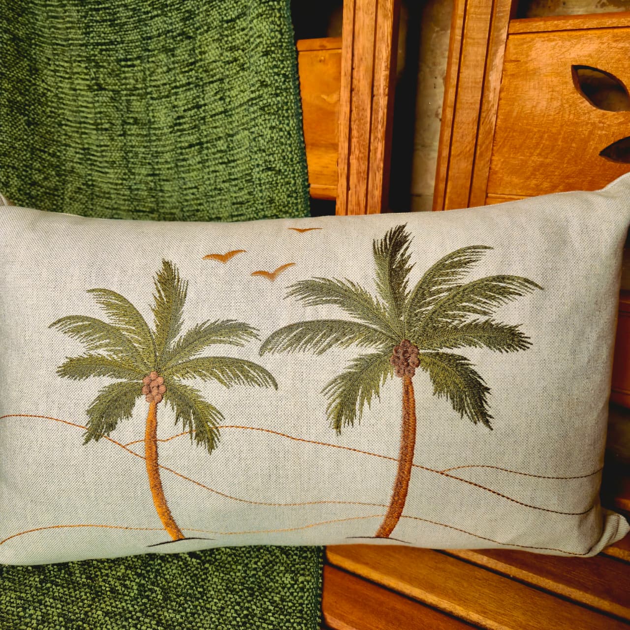 Almofada Baguete em Linho – Coqueiro Bordado
