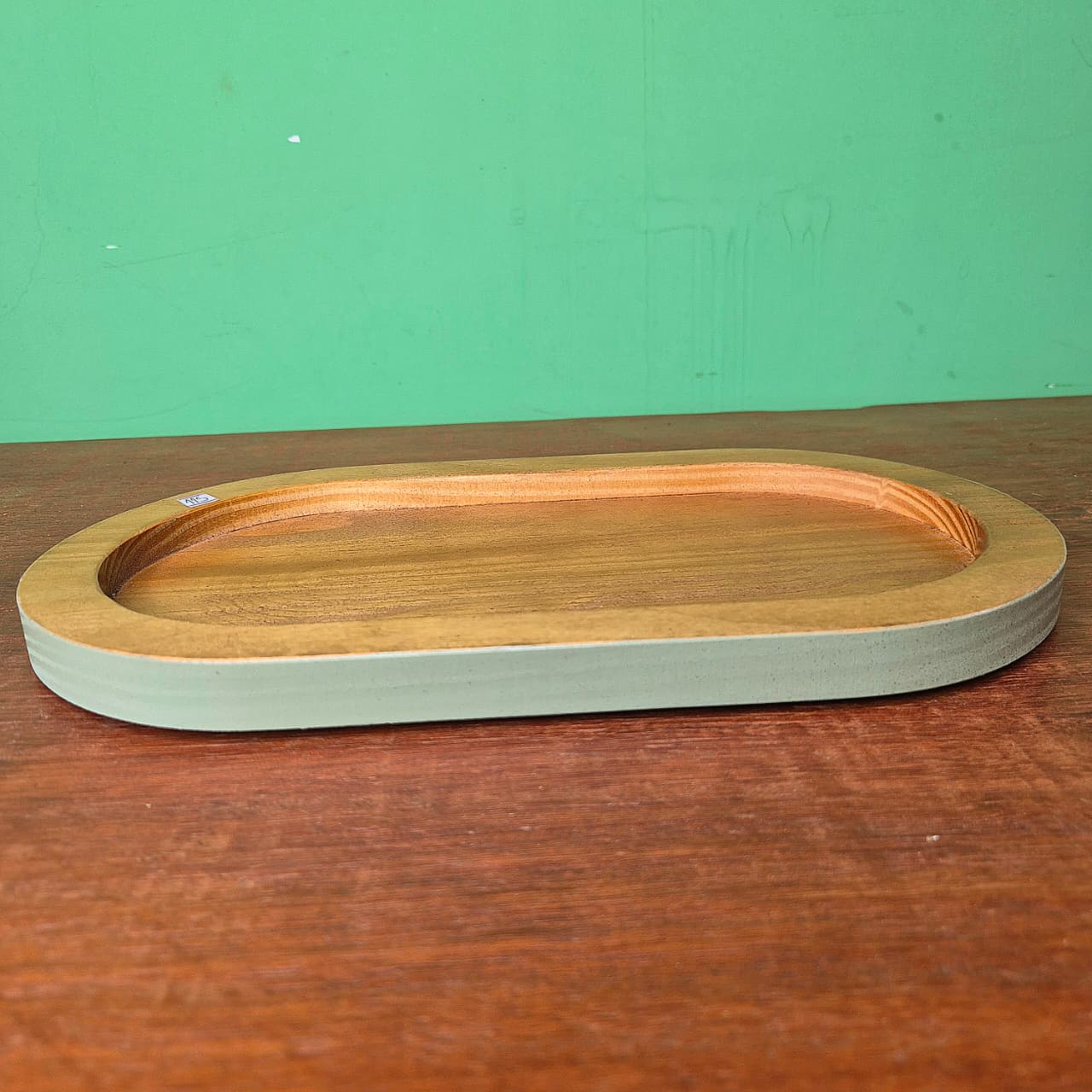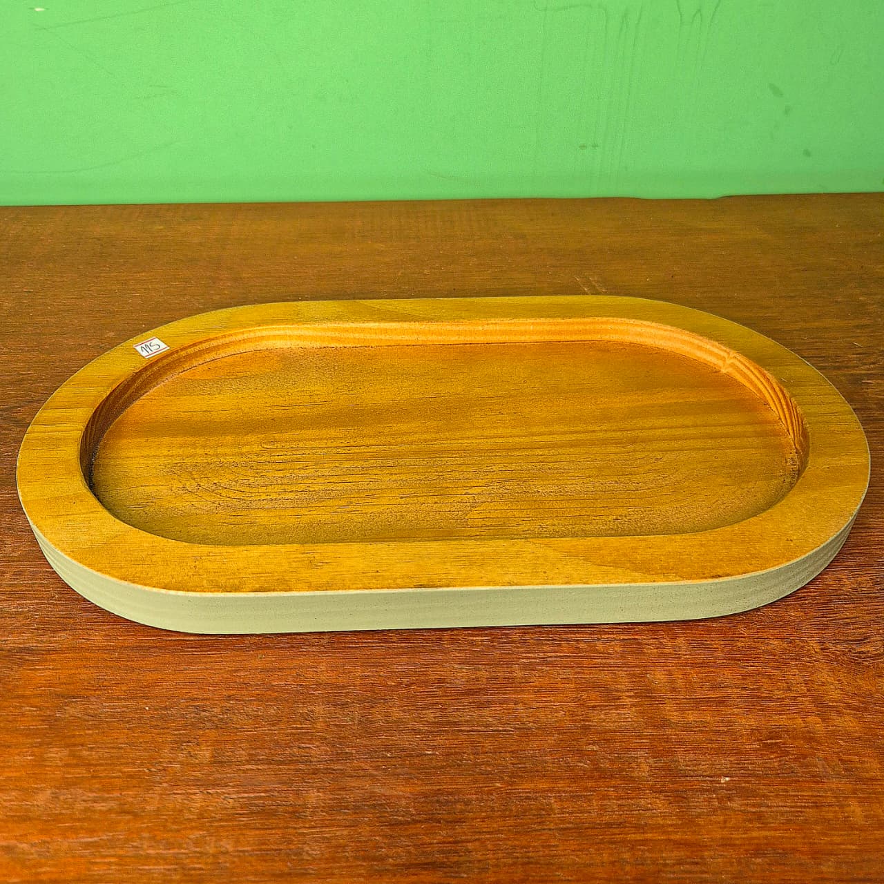 Bandeja produzida na madeira com bordas na cor verde pistache.