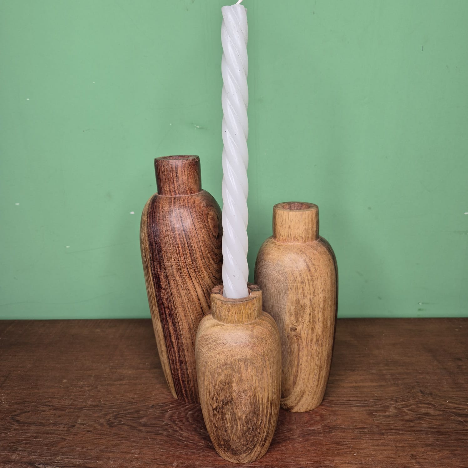 Castiçal produzido na madeira em detalhes.