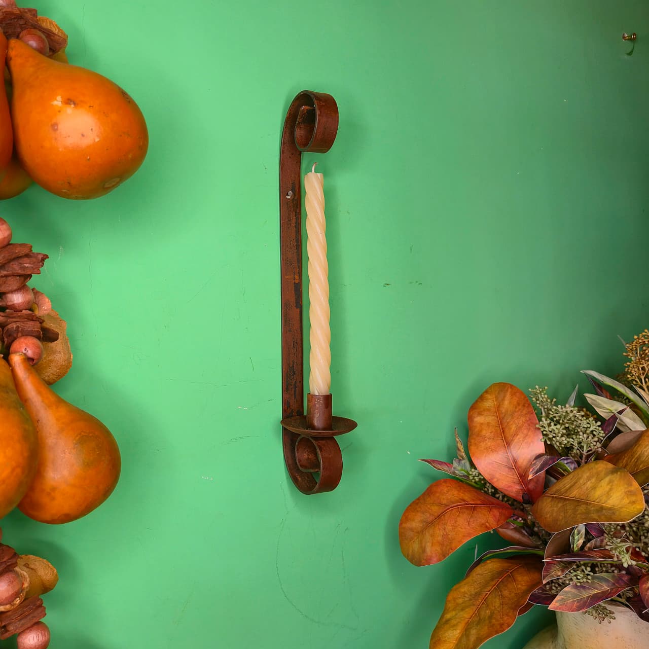 Castiçal com suporte para vela palito produzido em ferro.