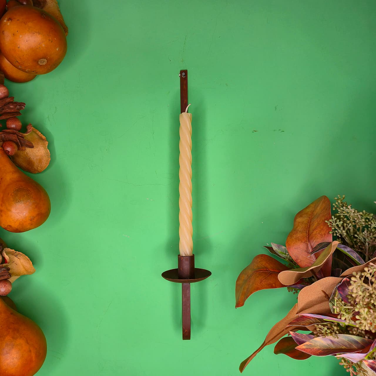 Castiçal com suporte para vela palito produzido em ferro.