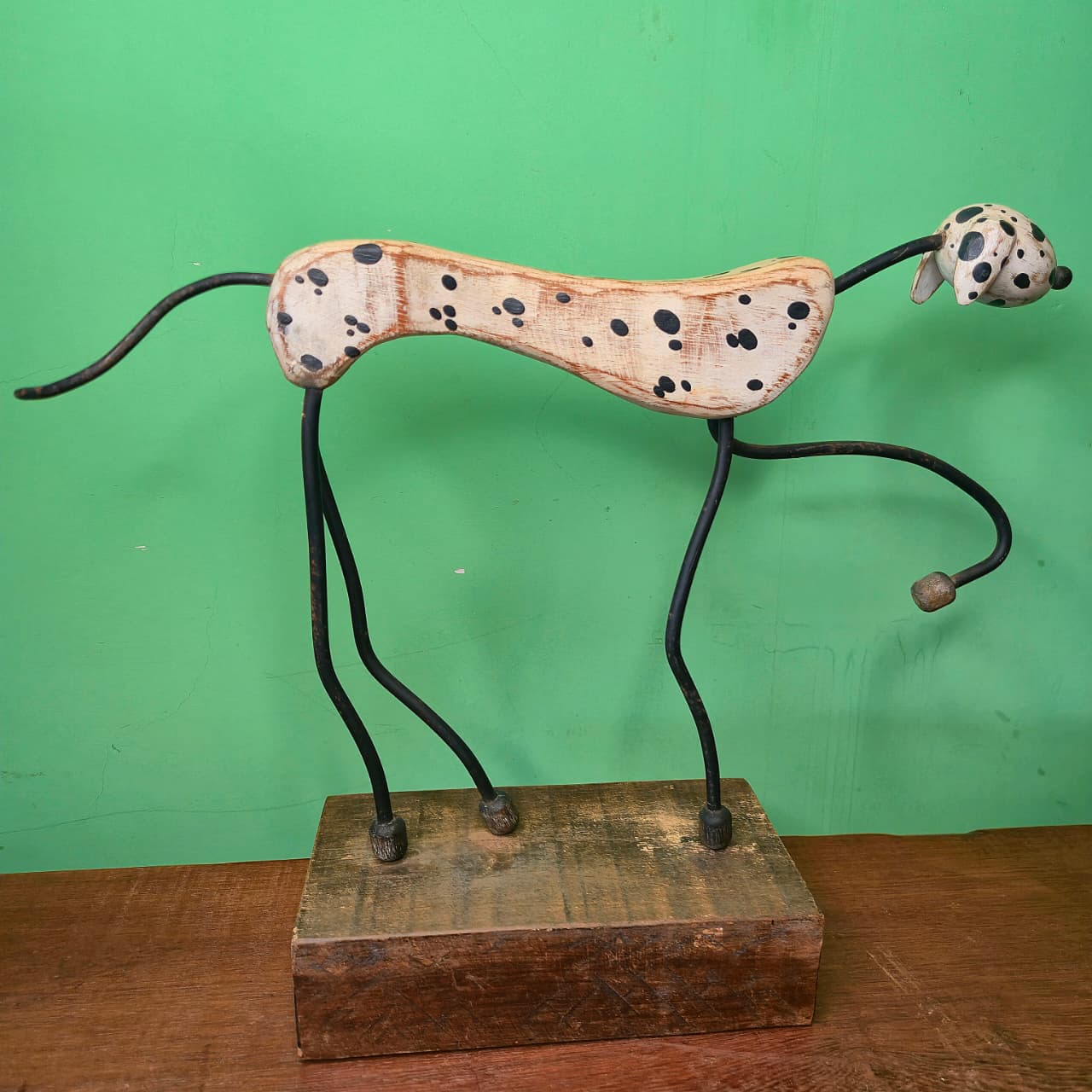 Dálmata produzido na madeira esculpida com membros em ferro e base de madeira.