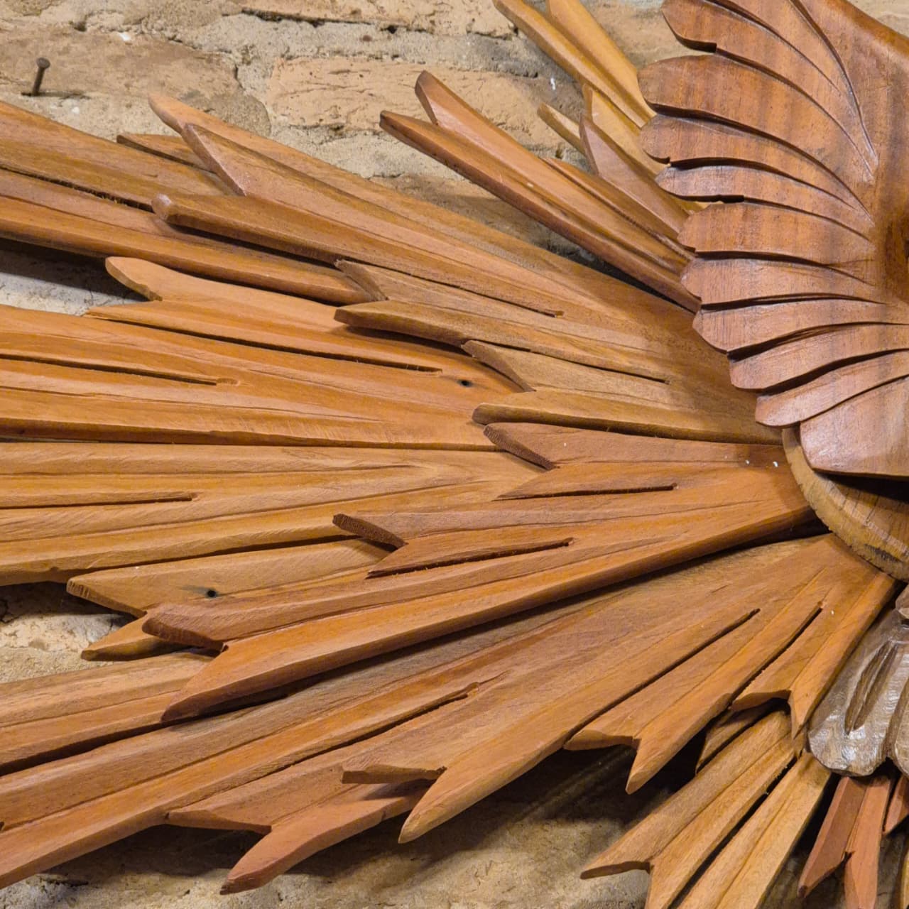 Quadro artesanal divino espirito santo esculpido na madeira em detalhes.