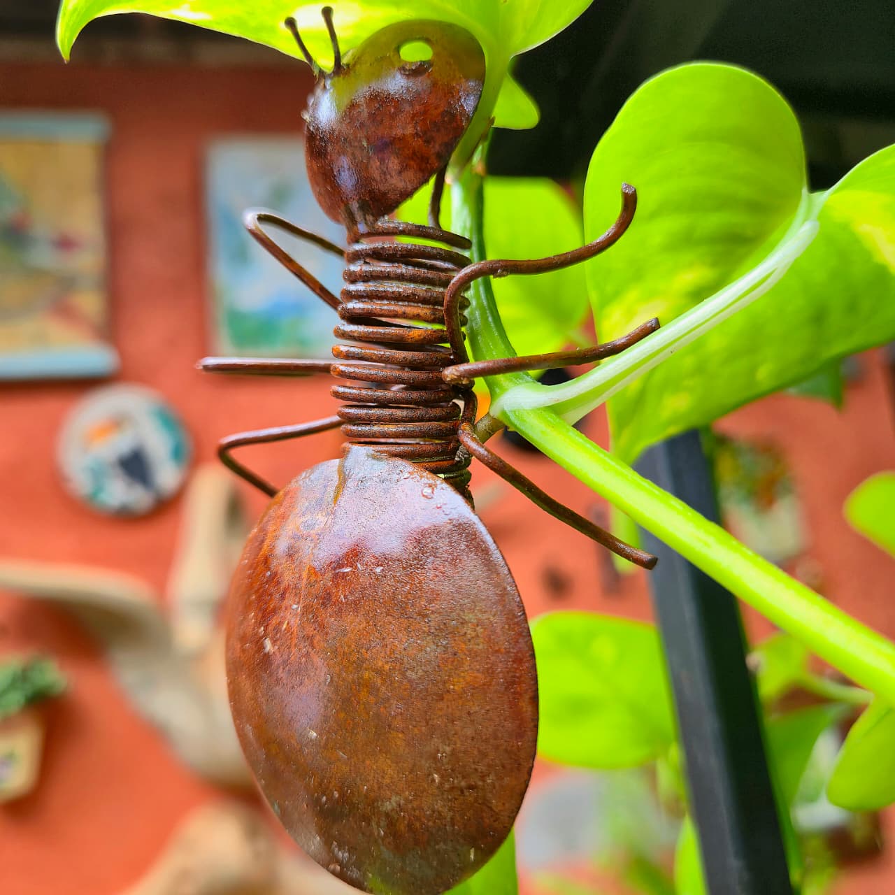 Formiga artesanal produzida em ferro e pintada a mão.