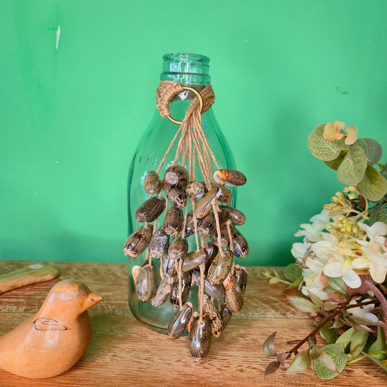 Garrafinha em Vidro com Colar de Conchas