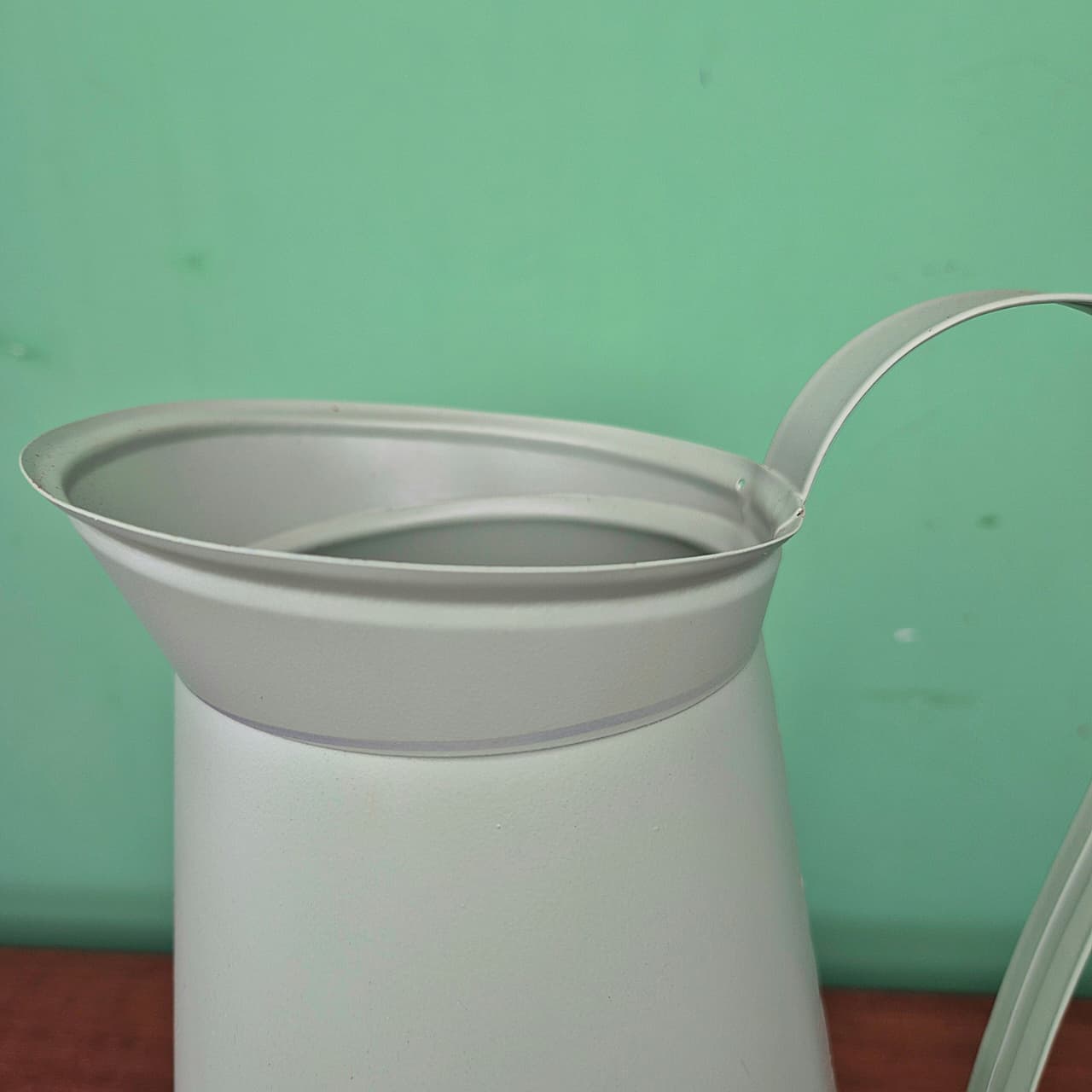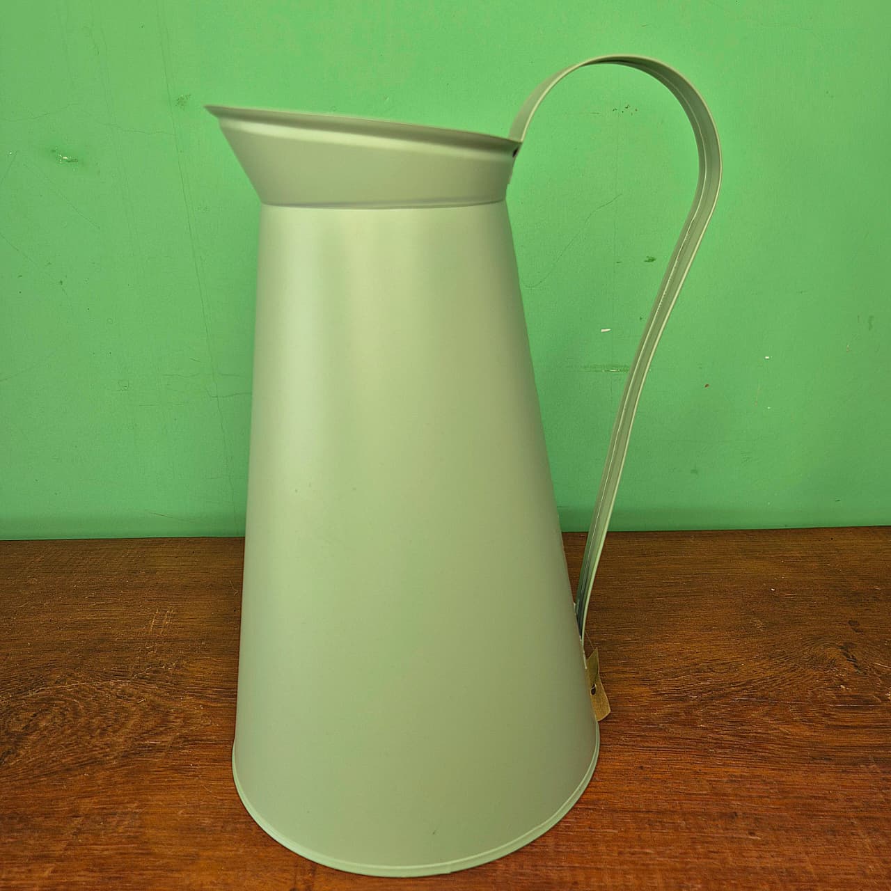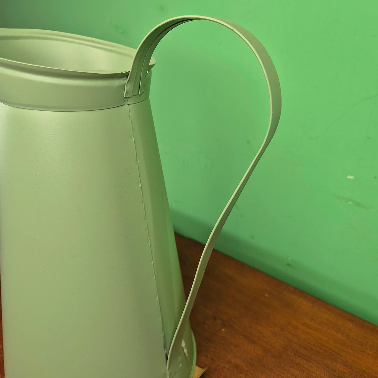 Jarro em lata com alça na cor verde pistache.