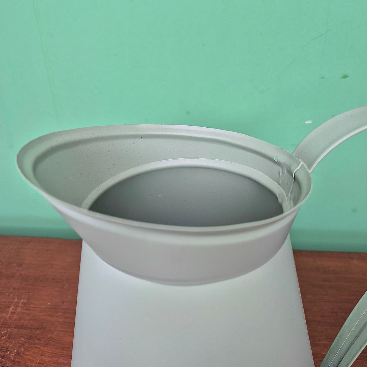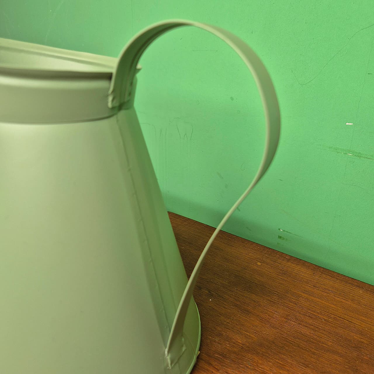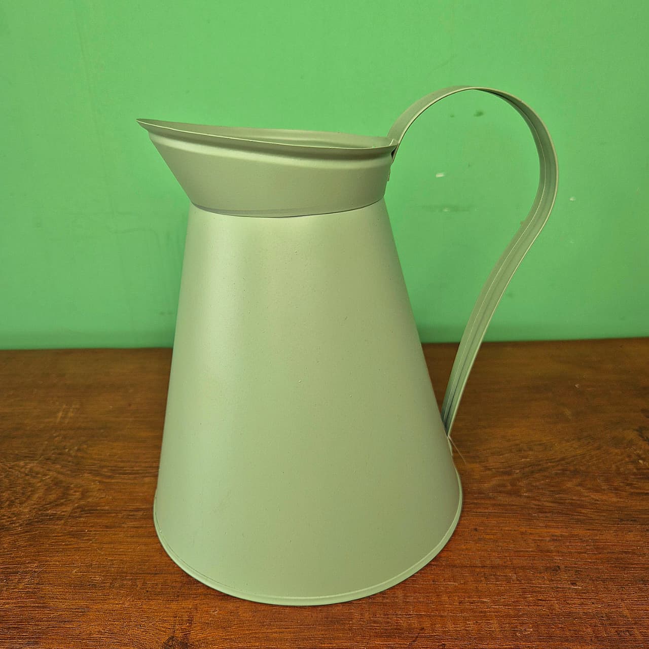 Jarro em lata com alça na cor verde pistache.