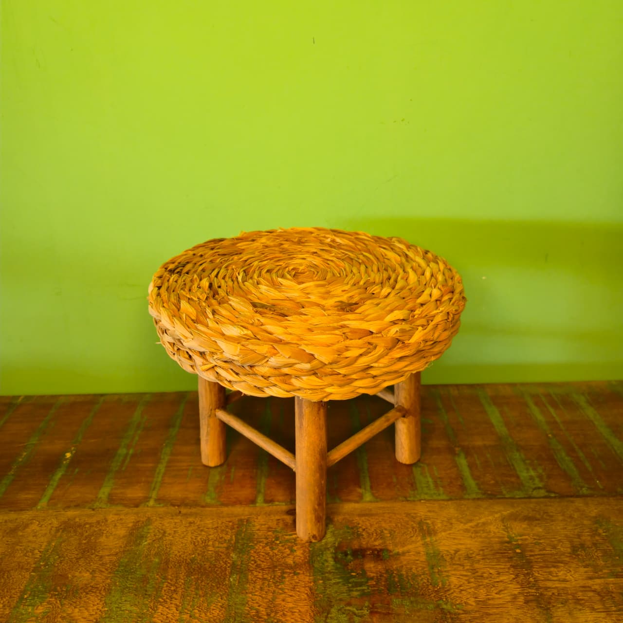 Mini Banco Decorativo na Madeira e Fibra de Taboa – M