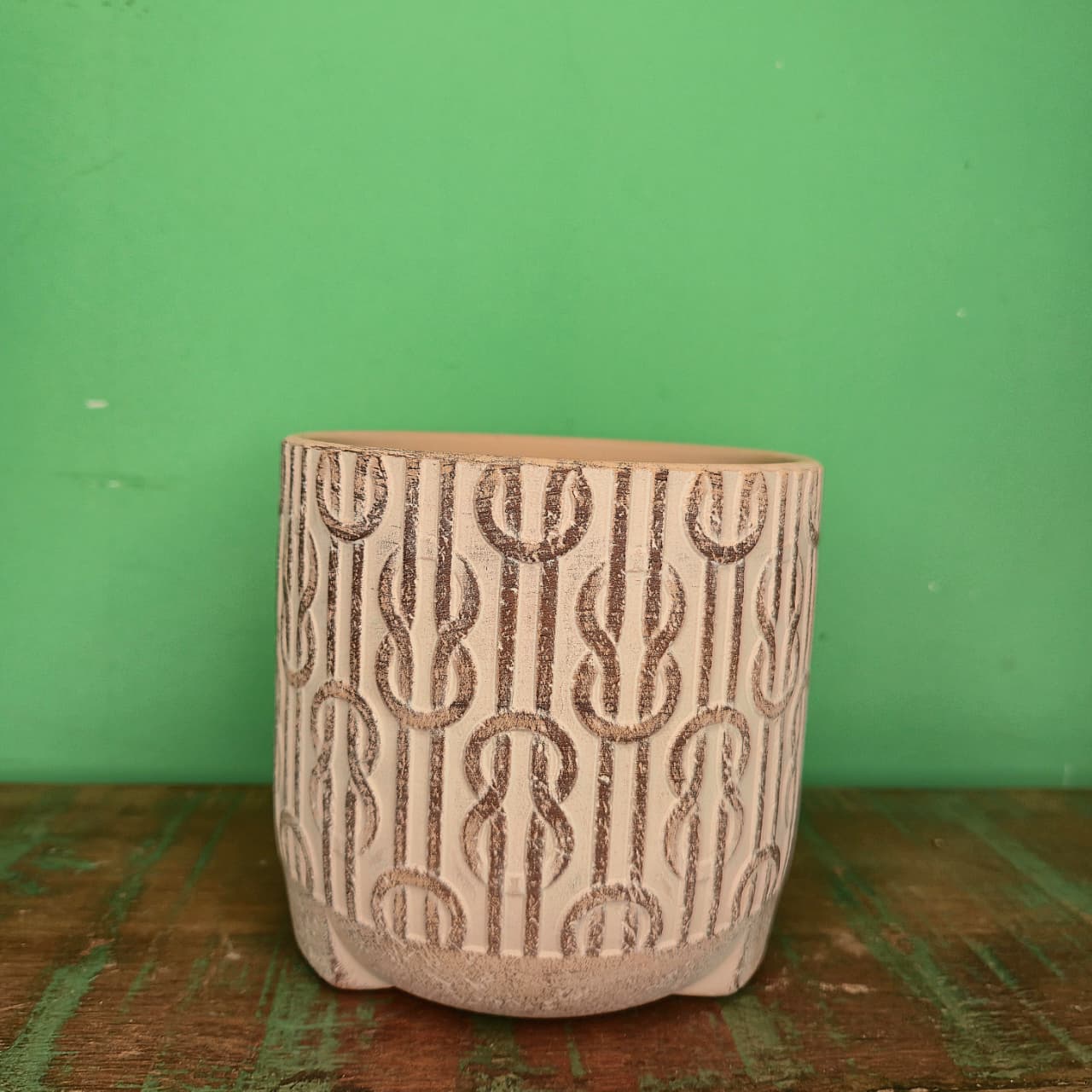 Vaso Cachepot de Cerâmica com Arabesco Corda Trançada
