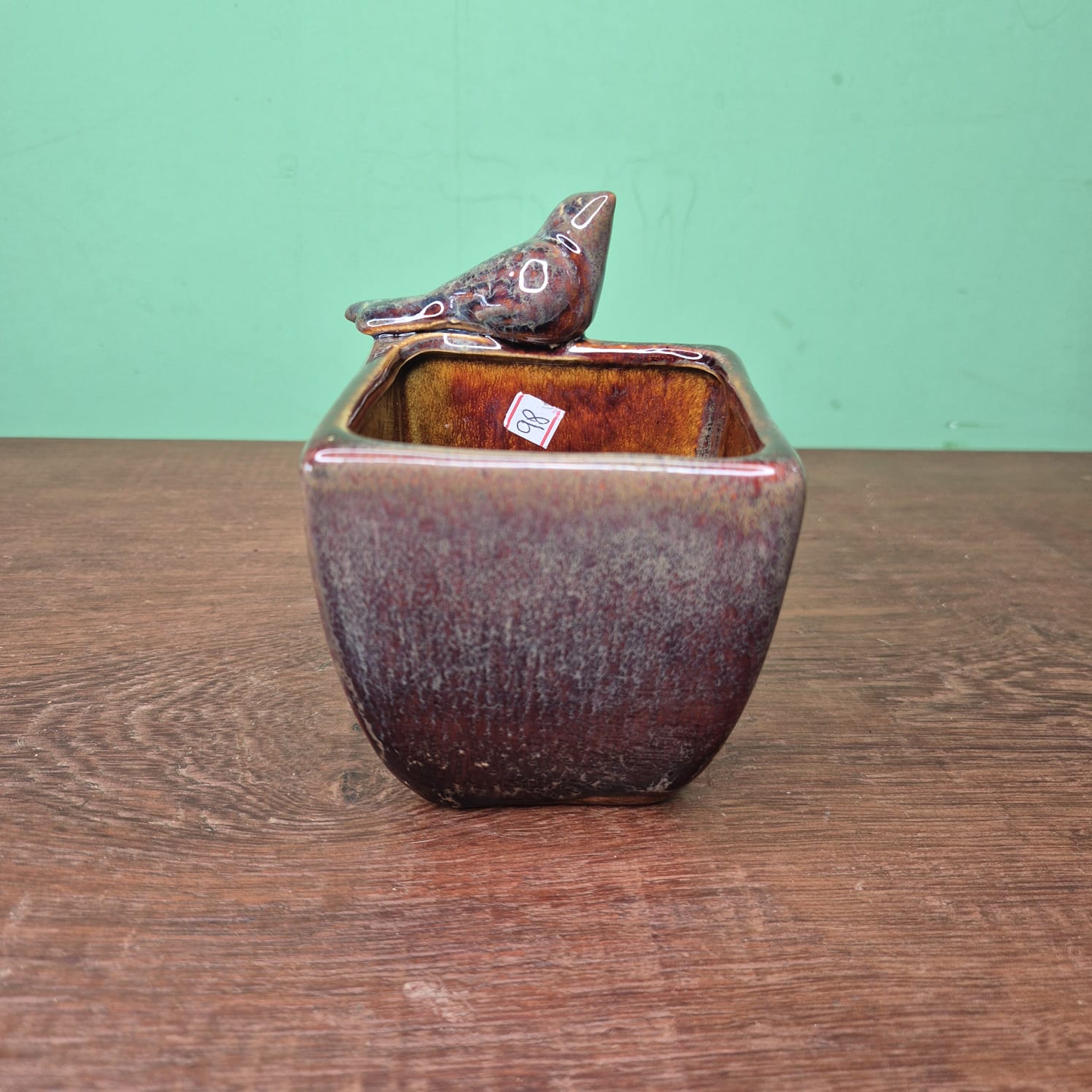Pote produzido em cerâmica esmaltada em detalhes com pássaro.