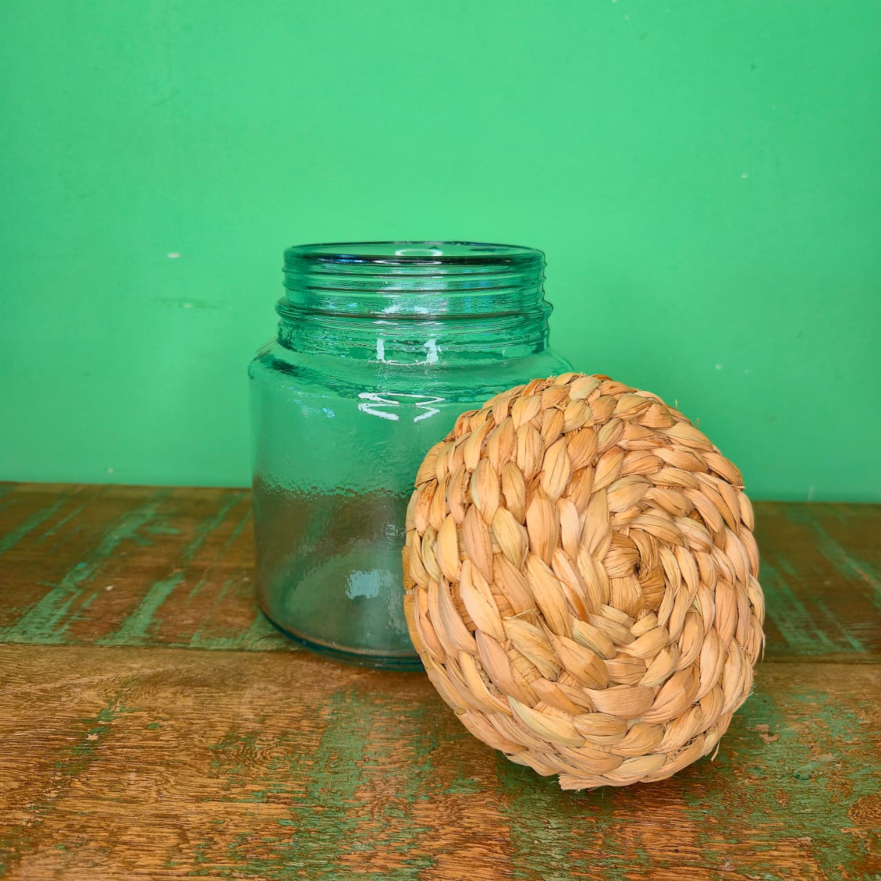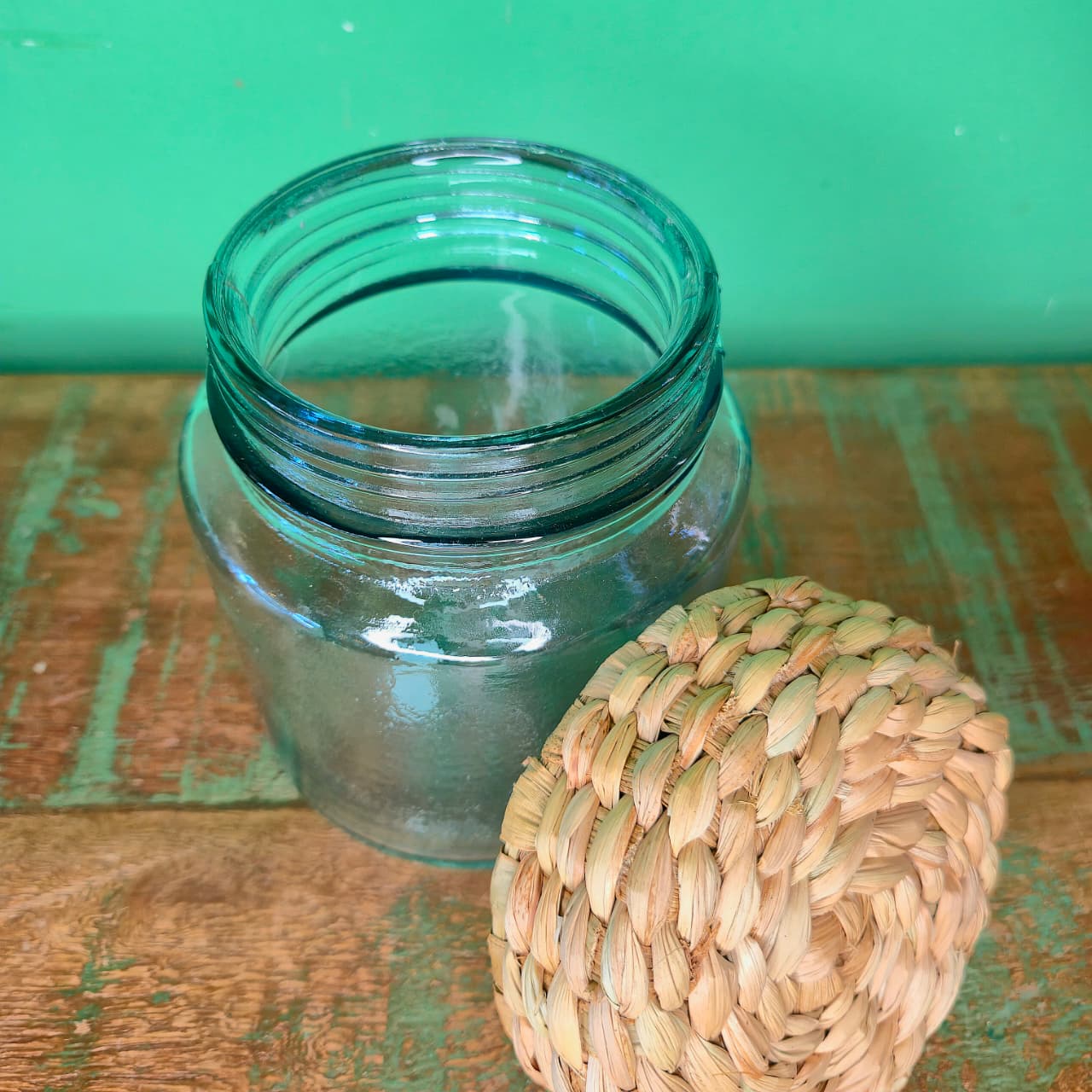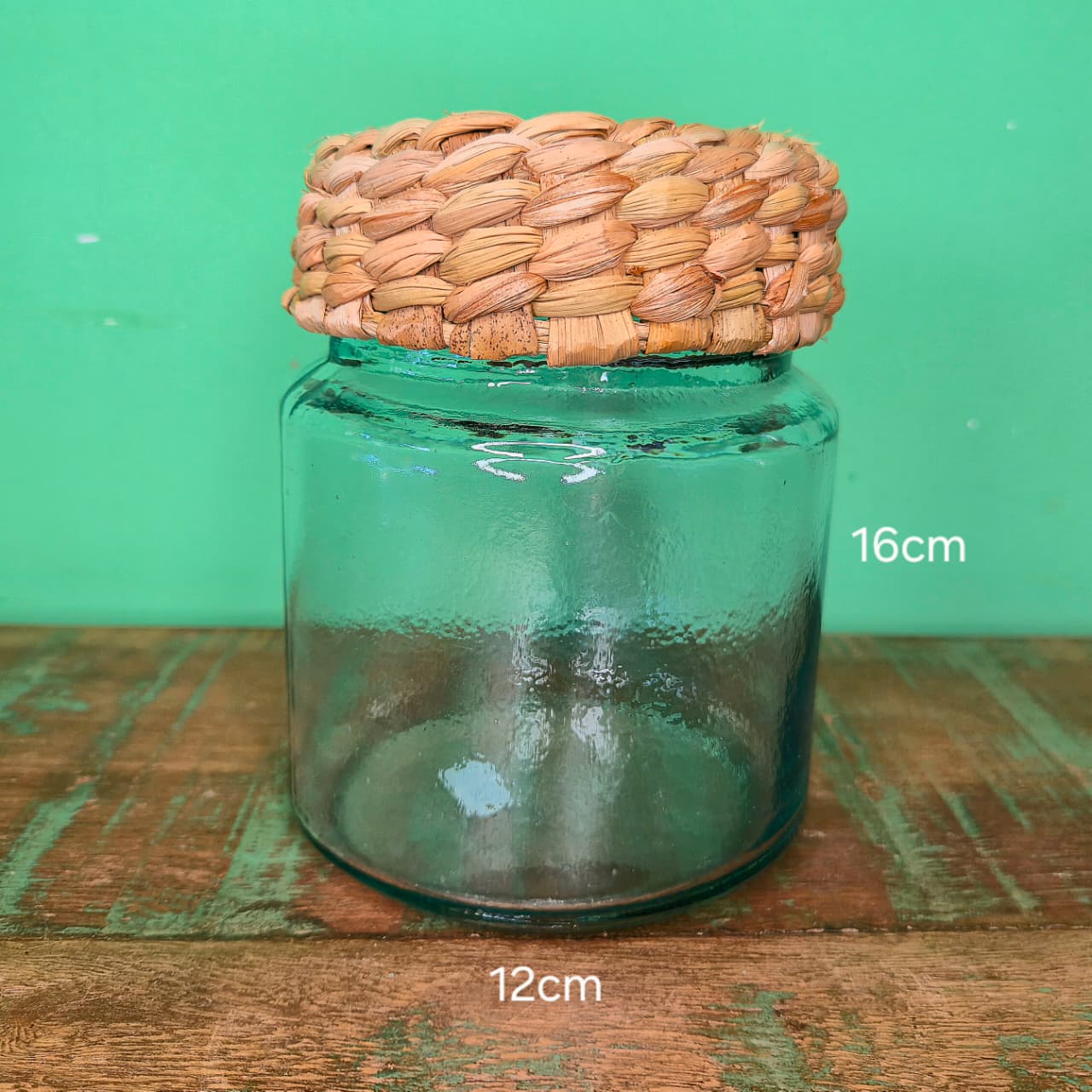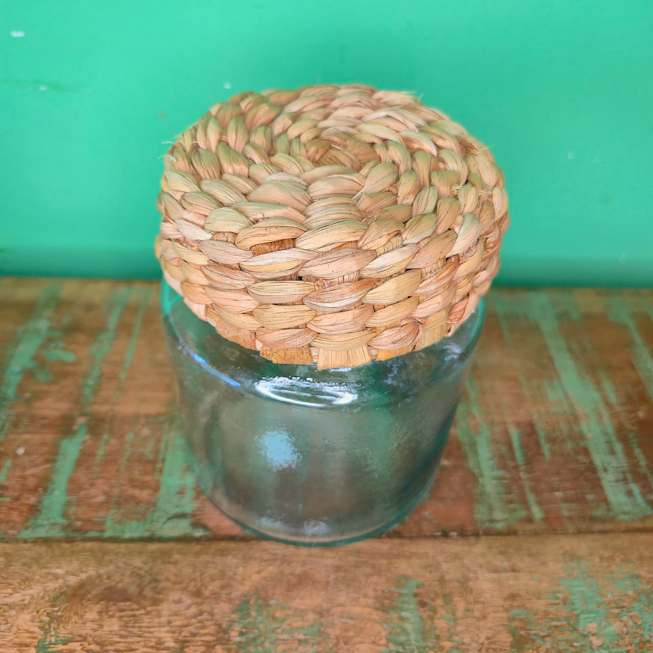 Pote de Vidro com Tampa Revestida na Fibra de Taboa – P