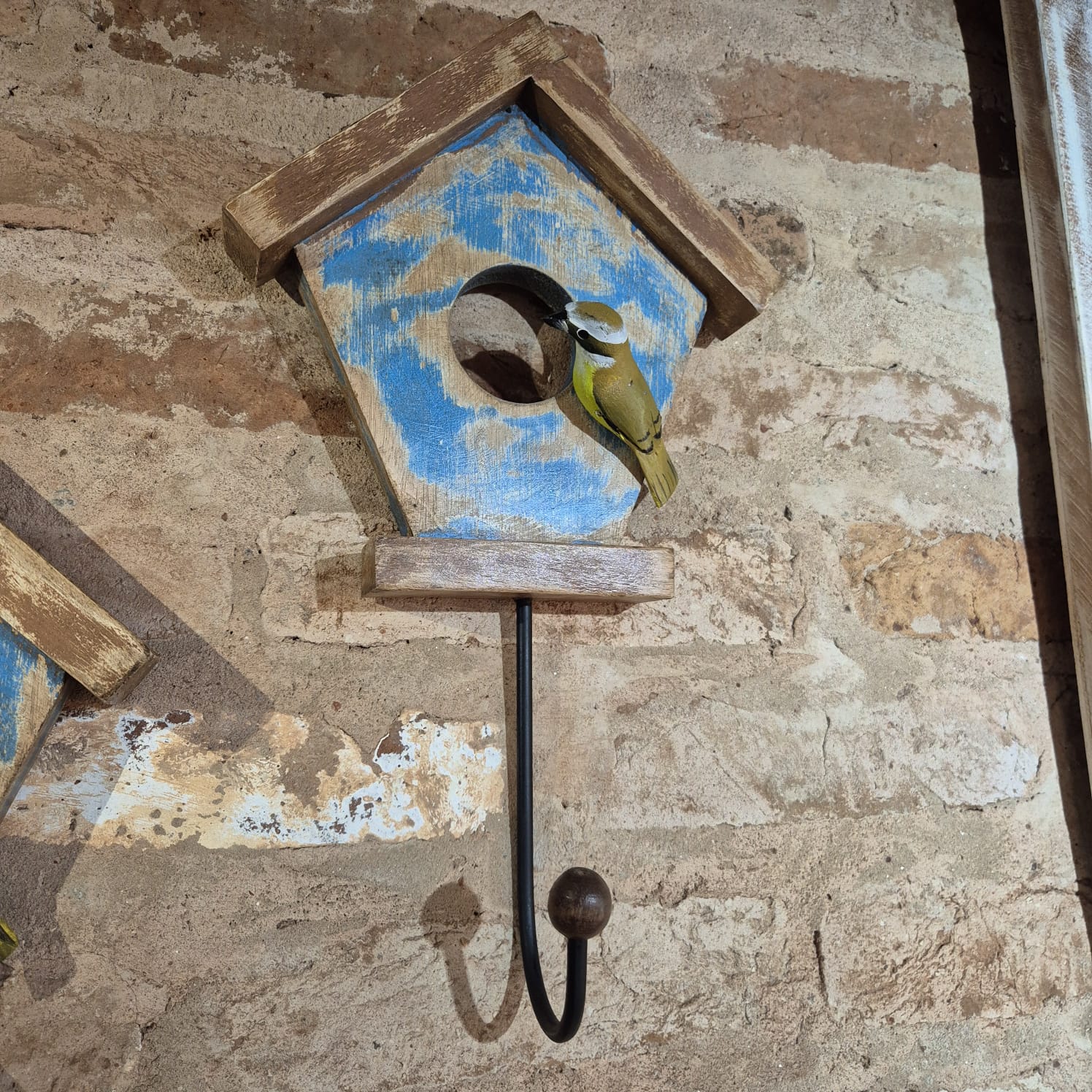 Quadro em madeira casinha de pássaro com gancheira.