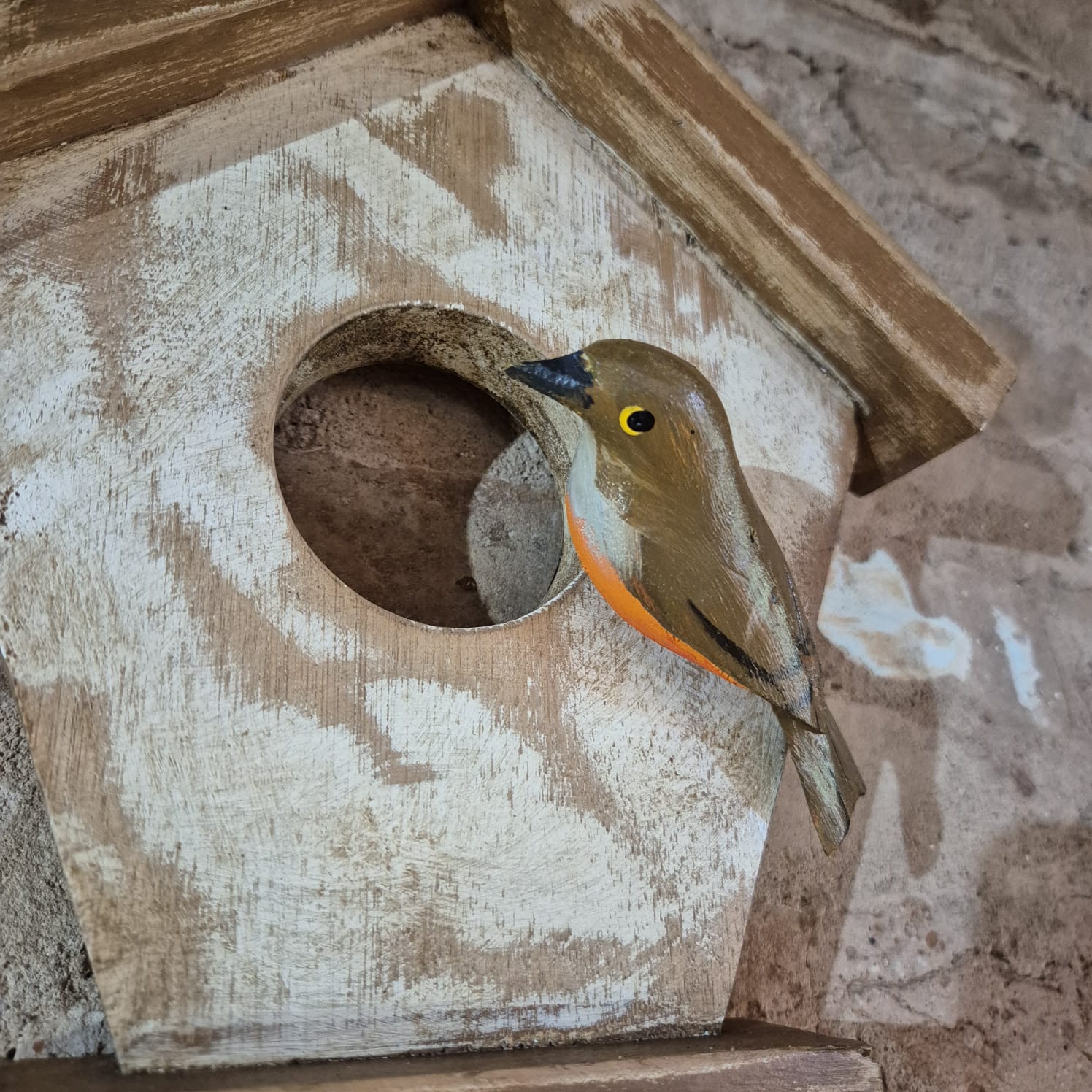 Quadro em madeira casinha de pássaro com gancheira.