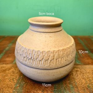 Peça produzida a mão na cerâmica. Pode ser usada como item decorativo em mesas ou aparadores.