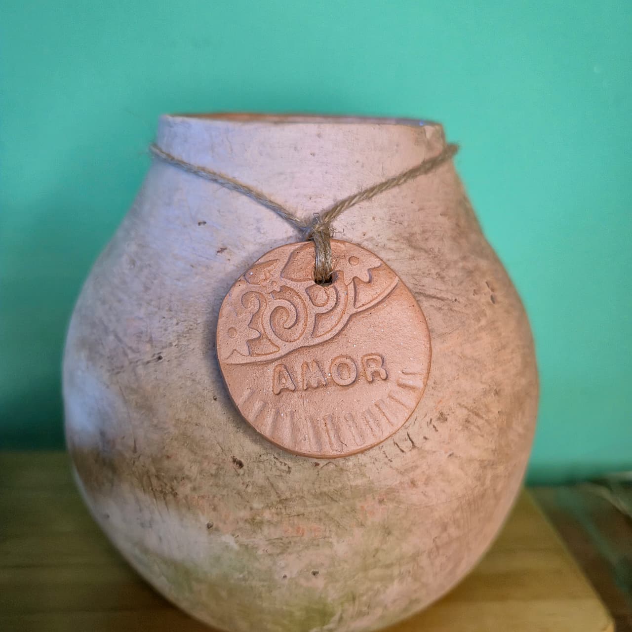 Tag produzida na cerâmica. Pode ser utilizada para composição em vasos e potes, gancheiras, cestarias ou como chaveiro.