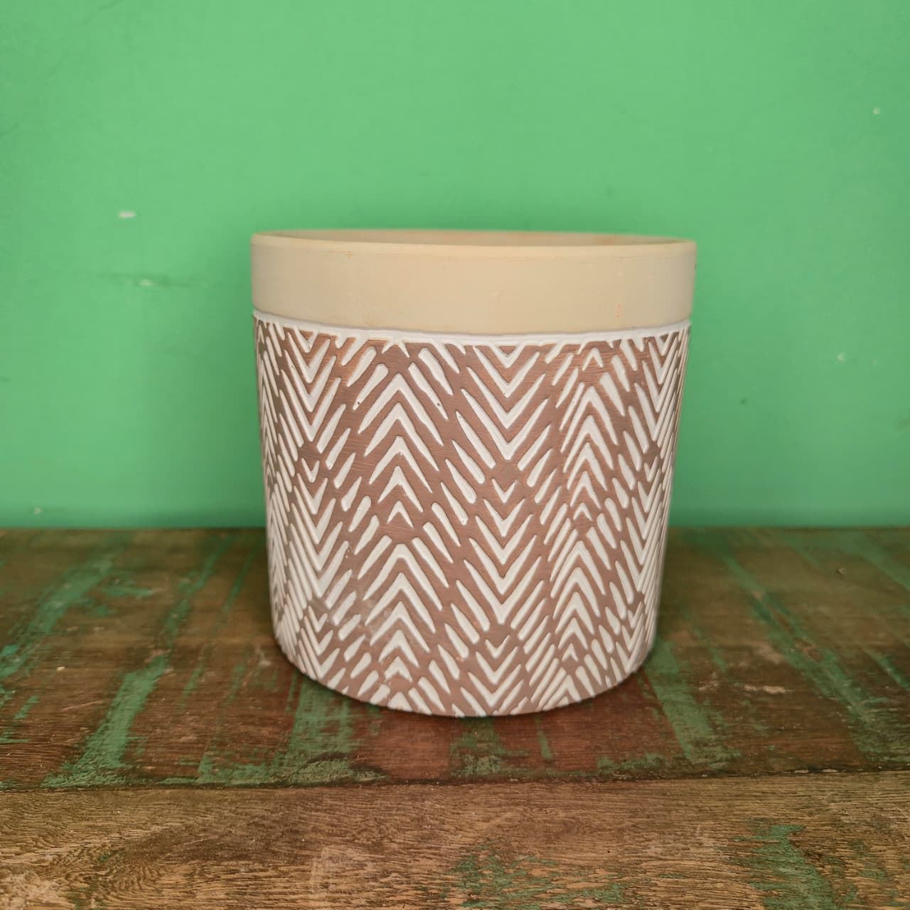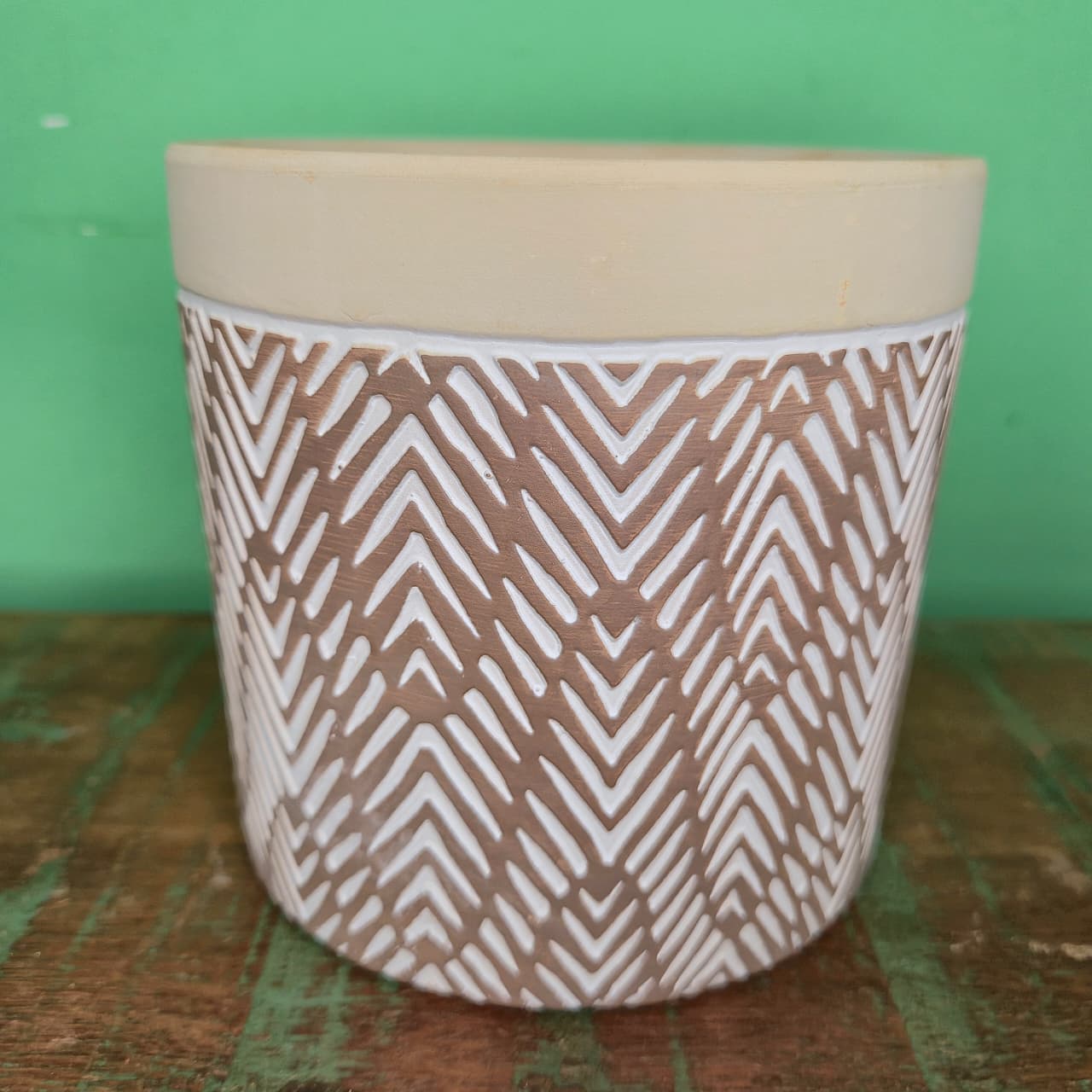 Vaso Cachepot de Cerâmica com Arabesco Chevron